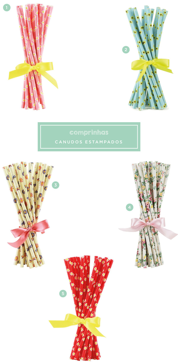 1. Canudinho rosa com margaridas: You Do It | 2. Modelo azul bebê com girassol: You Do It | 3. Canudinho com flores e borboletas: You Do It | 4. Modelo branco com rosas: You Do It | 5. Vermelho com margaridas: You Do It