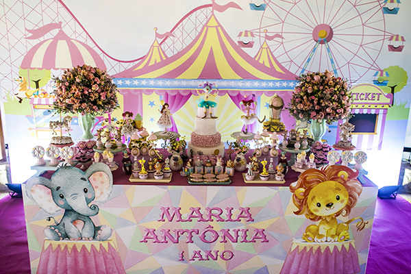 A Maria Antonia, filha da querida Isabella Barros, da Elas Assessoria, comemorou seu primeiro aniversário em uma linda festinha com tema circo. A decoração toda cor de rosa deixou o Terras De Clara