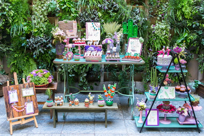 Festa infantil com tema cactos e lhamas