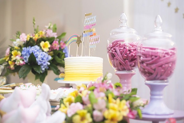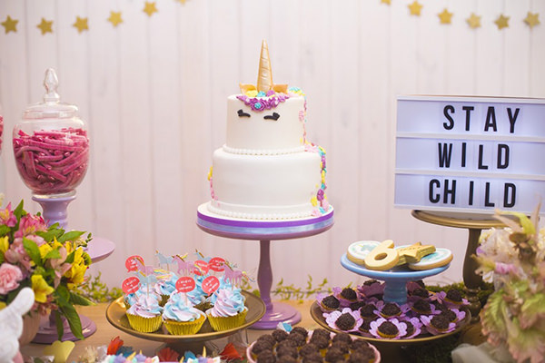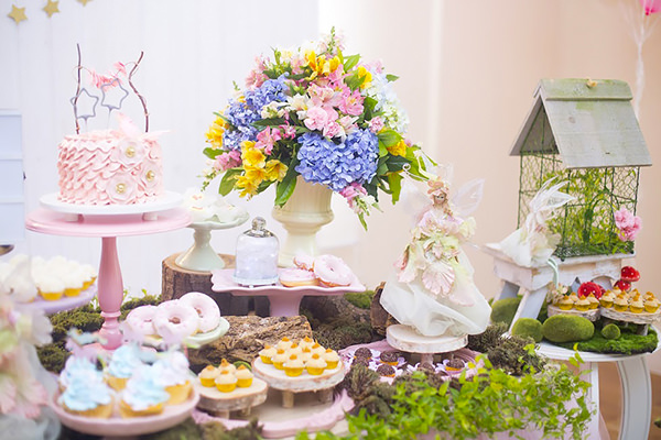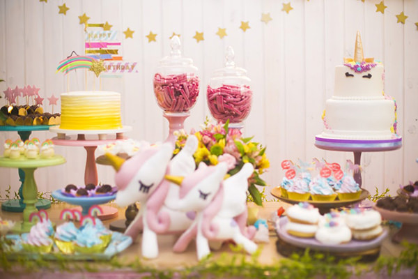 Decoração de fadas e unicórnios para aniversário de criança