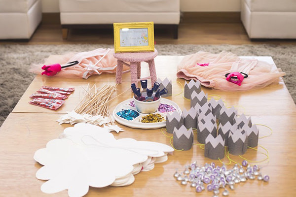 Para divertir os pequenos, a Partiê Festas bolou uma oficina de varinha de condão e asas de fada super divertida. Dá uma olhada nas fotos da decoração: