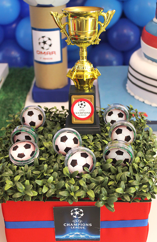 A decoradora Adriana Porto compartilhou com a gente a festinha de sete anos do Omar. A mesa de doces ficou demais e trouxe os times favoritos do pequeno: Barcelona, Paris Saint Germain e Real Madrid. As bexigas, simbolizando as bolas de futebol, construíram o painel de fundo lindo e com bastante volume. Na mesa, o destaque vai para a papelaria personalizada, que deixou os docinhos tradicionais cheios de charme. Trofeus e bolas arremataram a decoração. Vem ver todas as fotos: