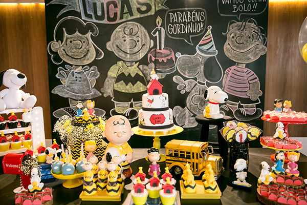 O Lucas comemorou seu primeiro aninho em uma linda festinha do Snoopy. A decoração valorizou os símbolos e objetos que surgem dos desenhos, como o avião a caixa do correio, o ônibus amarelo e a casinha que o Snoopy tanto gosta de dormir em cima. O destaque é o painel de lousa, que deixou o projeto moderninho. E assim como a decoração era personalizada, o cardápio que o Addad Franco preparou também. Pastelzinho no formato de Snoopy foi o grande destaque. Dá uma olhada nas fotos: