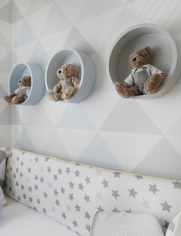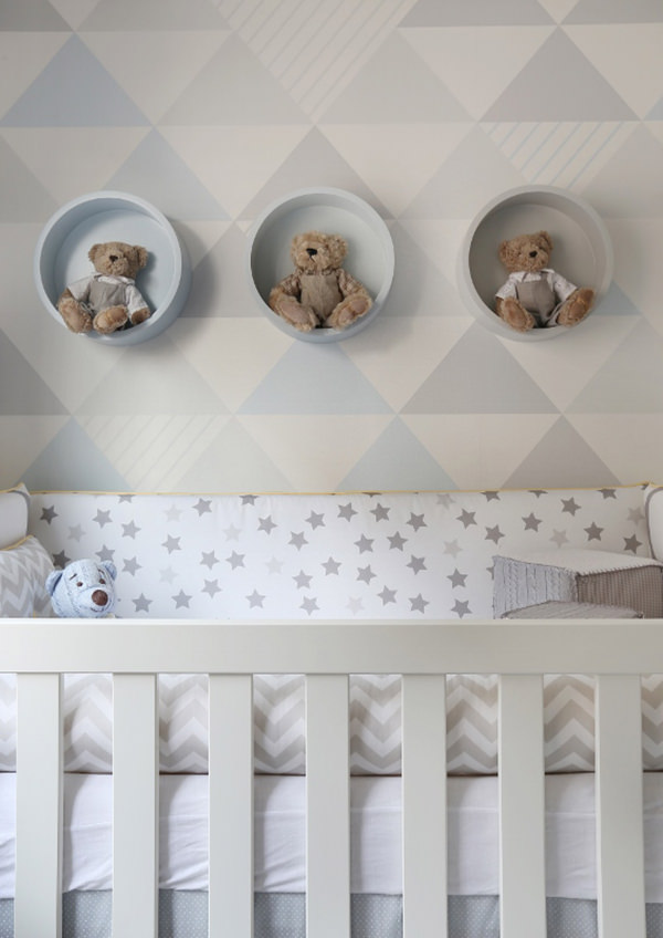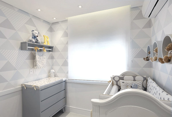 A arquiteta Monise Rosa compartilhou com a gente o lindo quartinho de bebê que preparou para a chegada do segundo filho de um casal. Como o sonho dos pais era ter um ambiente moderno e clean, o ponto de partida foi papel de parede geométrico em tons de cinza e azul bem clarinho. O branco domina também o projeto, que arremata e traz o aconchego tão esperado pela família. Adoramos os nichos redondos com ursinhos sobre o berço, pra o pequeno nunca se sentir sozinho. Dá uma olhada nas fotos: