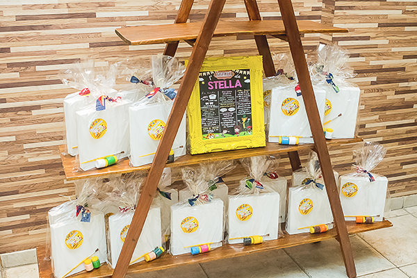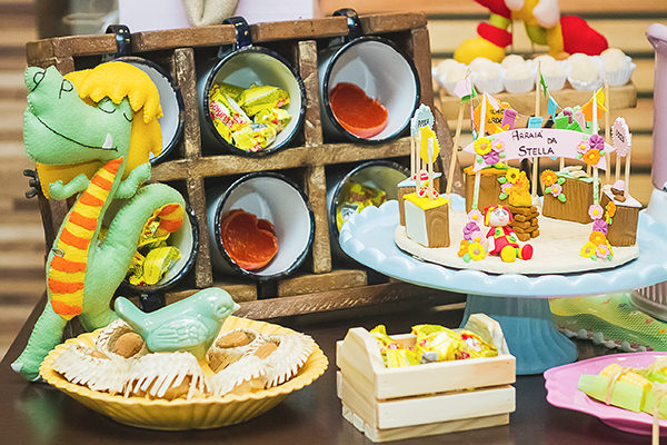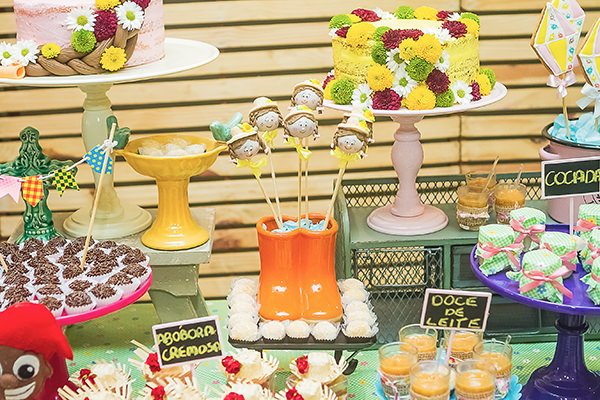 Emília, Narizinho, Pedrinho, Dona Benta e Saci Pererê foram alguns dos convidados de honra do arraiá da Stella. A festinha com tema Sitio do Picapau Amarelo foi decorada por Roberta Mazzeo e trouxe diversas ideias legais para a mesa de doces. Os elementos da fazenda ganharam vida nova na decoração. As canecas de ágata serviram de porta balas. Os reservadores de sementes acomodaram pipoca, suspiro e marshmallow.
