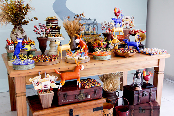 FornecedoresFABI MOURADecoração de Festas Decoração de FestasSão Paulo, São Paulo (Capital) São Paulo, São Paulo (Capital)Leia mais decorou. O projeto ficou demais!!! O jumento, o cachorro, a galinha e a gata foram os convidados de honra da mesa de doces. As maletas vintage e o clima de fazenda foram o ponto de partida da produção e trouxeram a história da fuga dos amigos.