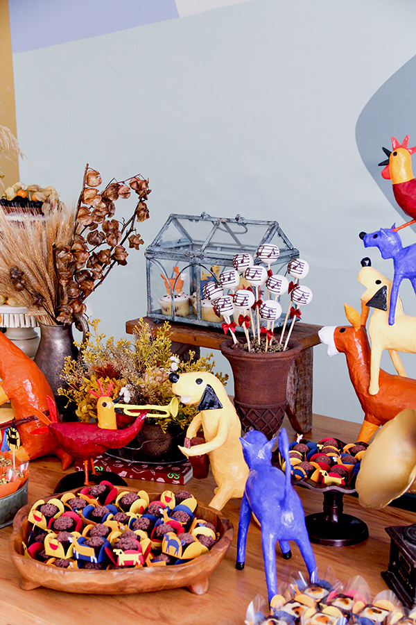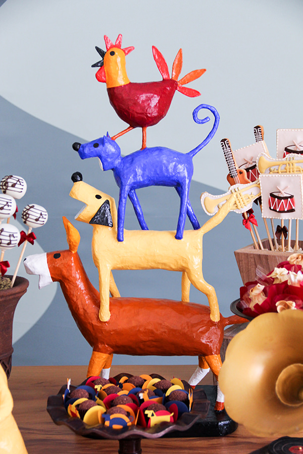 Para deixar a mesa de doces lúdica, a Sweet Carolina fez docinhos personalizados com as personagens. Adoramos os cupcakes de bichinhos e os cakepops com as notas musicais da letra de Chico Buarque. As peças decorativas da Ella Arts arremataram a decoração. Vem ver as fotos: